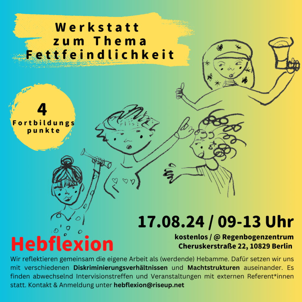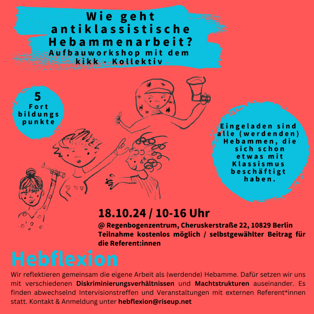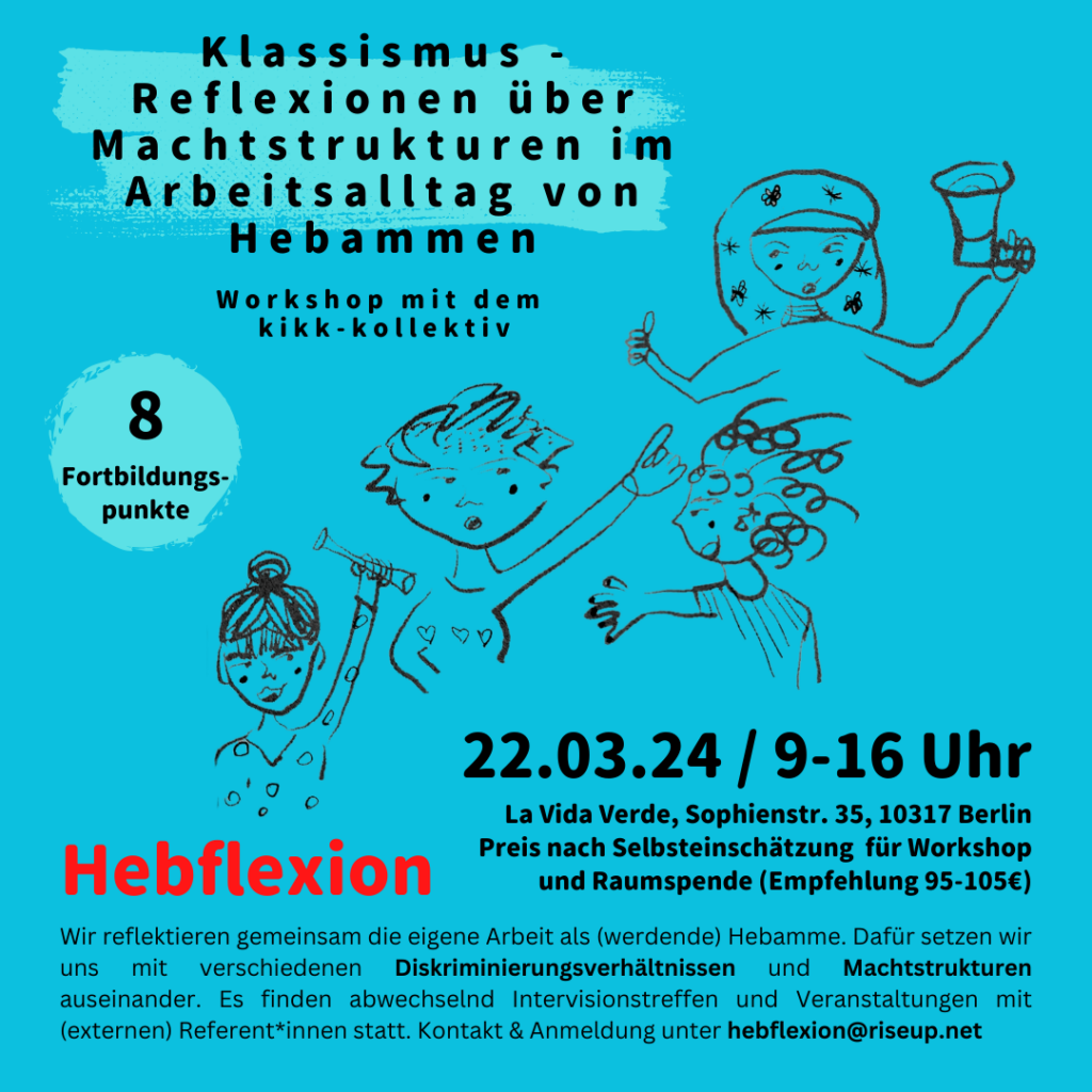 Um Wissen zu bündeln und Perspektiven zu erweitern, gibt Giovanna uns zu Beginn einen rahmengebenden Input, u.a. zum rechtlichen Umgang mit sexarbeitenden Schwangeren, der Heterogenität von Sexarbeit und Einblicke in ihre Forschungsarbeit zum Schwangersein in der Sexarbeit. Anschließend erarbeiten wir gemeinsam die Begrenzungen und Potenziale der Hebammenbegleitung von sexarbeitenden Schwangeren und tauschen uns über Erfahrungen aus, reflektieren Haltungen und entwickeln professionelle Handlungsmöglichkeiten für die Praxis.